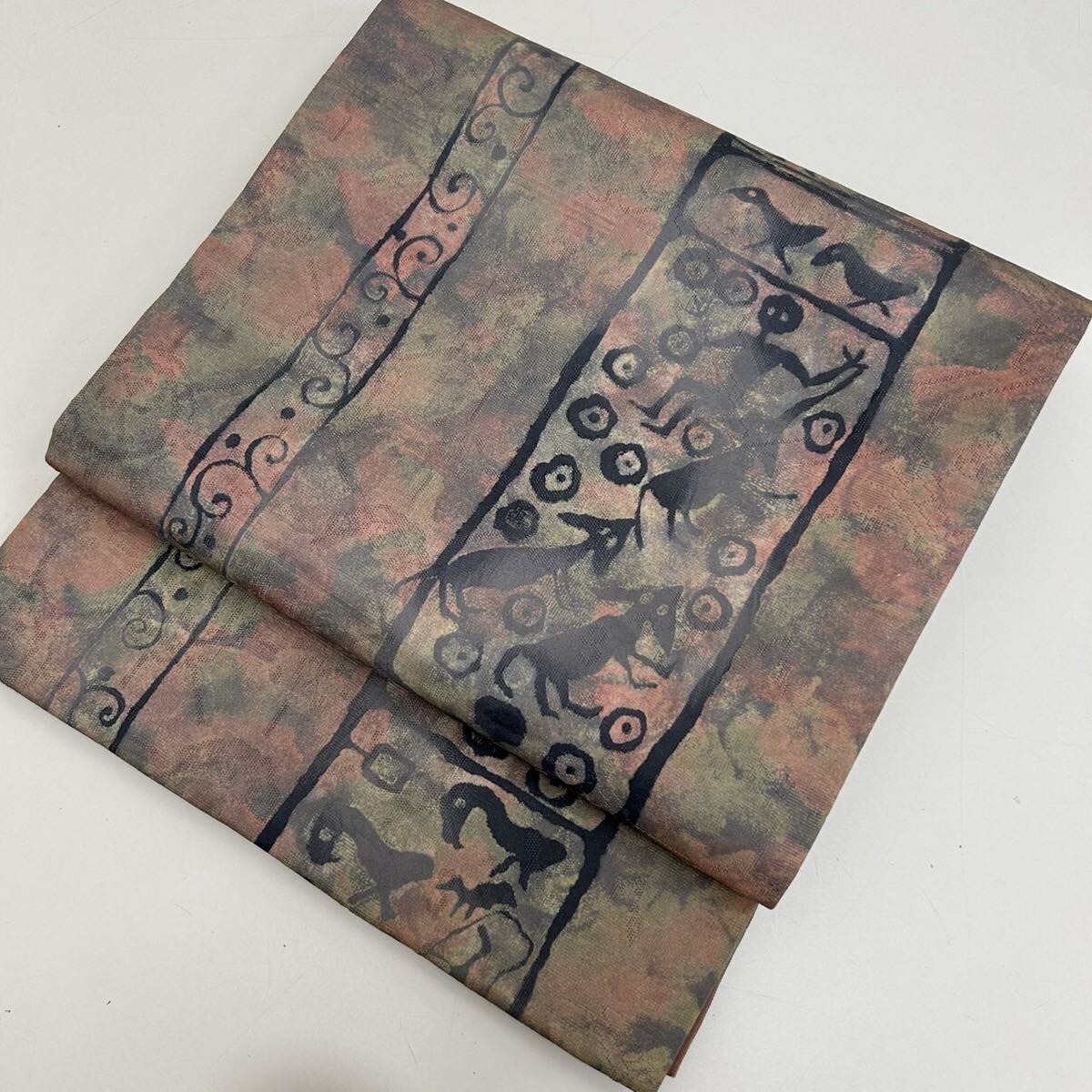 > 京袋帯 博多献上 コプト文様 染め 着物 正絹 W-5278
