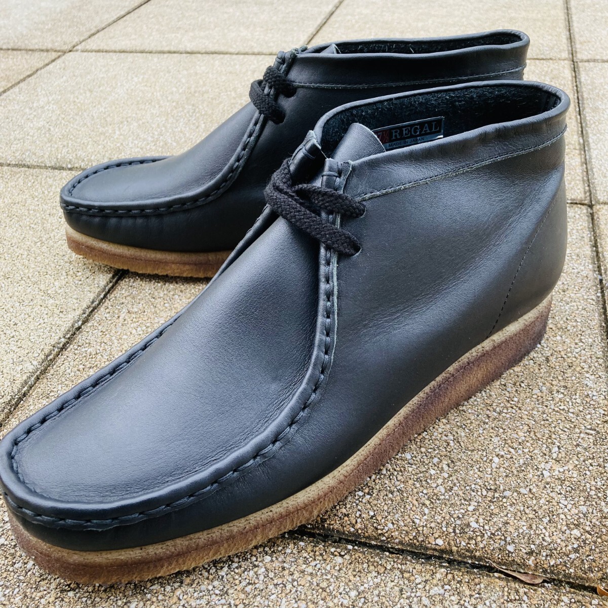 > ★美品★ リーガル REGAL 27.5cm デザートブーツ クレープソール ブーツ 革靴 BK ブラック 黒 牛革 レザー 日本製 メンズ
