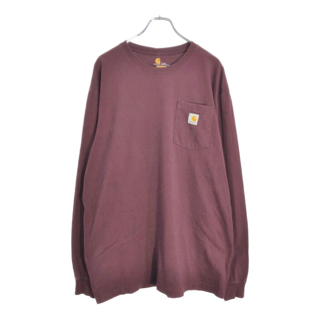 - Carhartt カーハート ワンポイントロゴ 長袖ポケットTシャツ ワインレッド(メンズ L)中古 古着 V6443