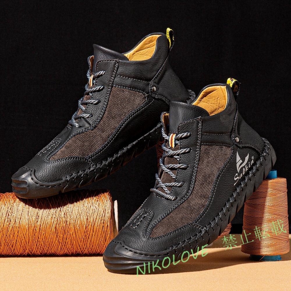 > ☆新品超希少 レザーシューズ 牛革 ショートブーツ スニーカー ウォーキングシューズ軽量アウトドア用 キャンプ 通気性黒24cm~28.5cm