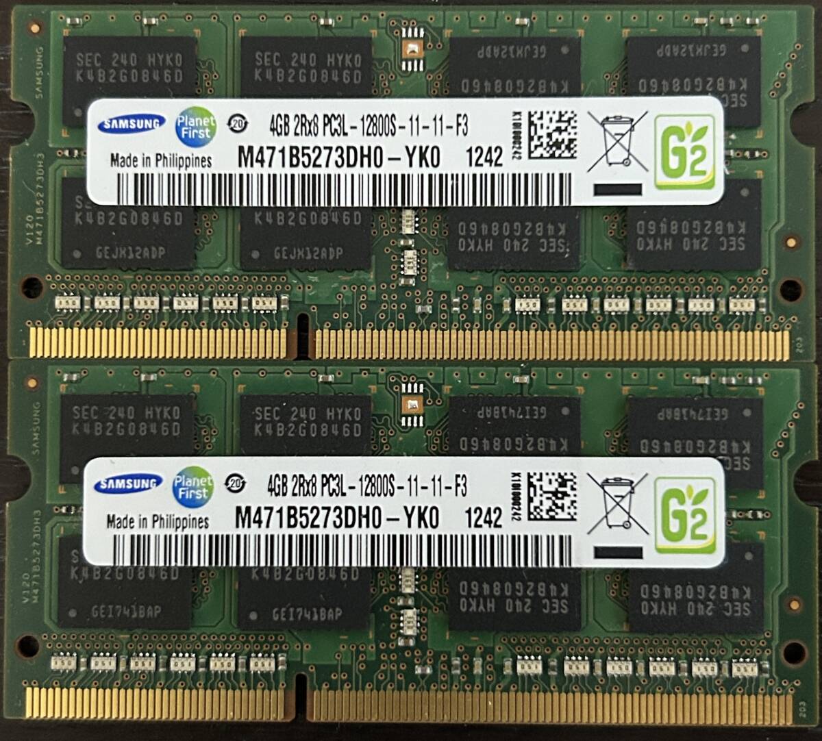 - 即決 動作確認済み SAMSUNG サムスンSO-DIMM 204pin DDR3L PC3L-12800S 4GB×2枚 1.35V低電圧対応 1.5V対応 ノートパソコン用 002L