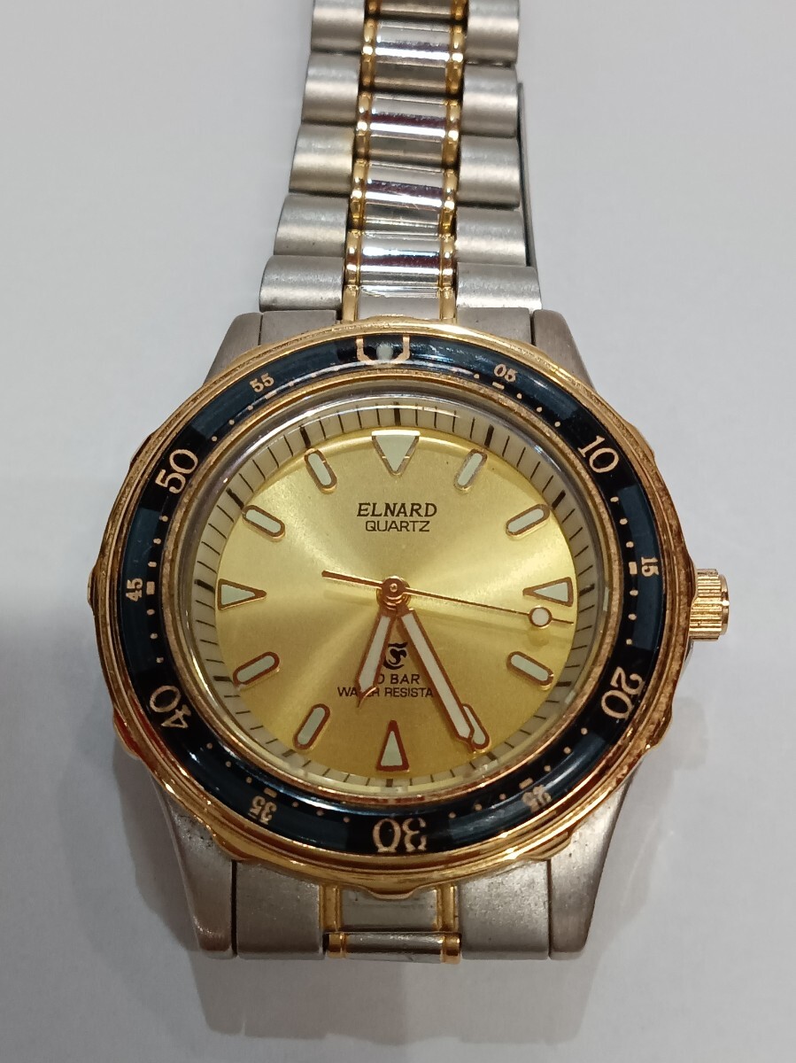 - ELNARD メンズ 腕時計 クォーツ ゴールド文字盤 ED-001 Ⅱ 中古 電池切れの為動作未確認 現状品 エルナード