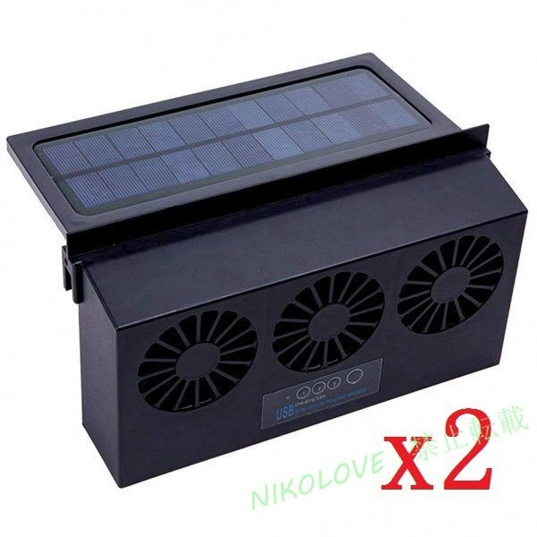 - ☆新品換気扇 車用 2個セット 太陽光パネル搭載 3連 ソーラーファン 換気ファン 充電 バッテリー搭載 温度計付き 排熱 扇風機 ゴムフィン