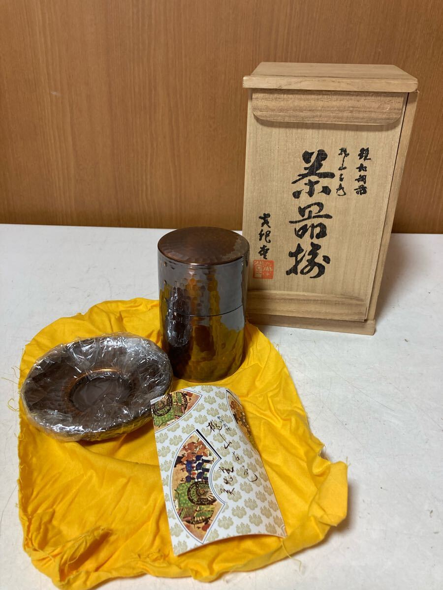 - 未使用 保管品 [共箱付] 英純堂 鎚起銅器 桃山古色 茶筒 茶器 銅製 和食器 茶道具 茶托 まとめて