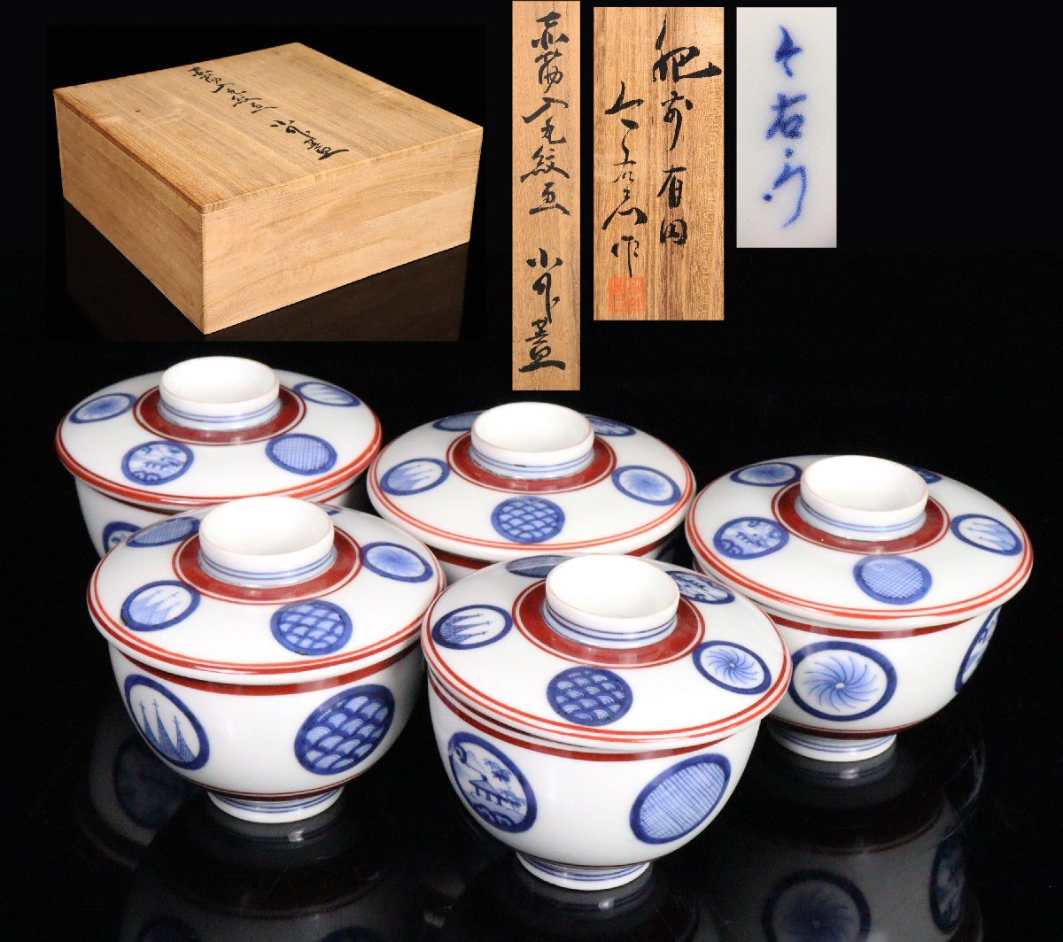 > 【ASAHI】肥前有田 今泉今右衛門 有田焼 和食器 蓋付 5客 茶碗 色絵磁器 木箱入[78162qt]