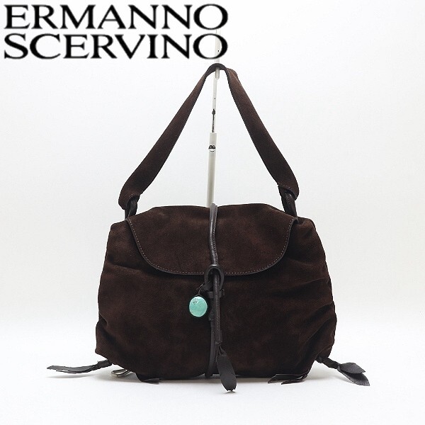 - 【HA812】◆ERMANNO SCERVINO エルマンノ シェルビーノ スエード ターコイズ 肩掛け ワンショルダー バッグ ダークブラウン