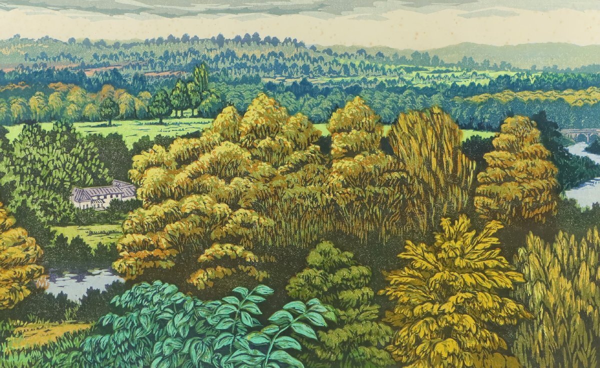 ・江幡讃「秋雨 クリムデンのデムズ」1996年制作 木版画 額装品 220 /風景画 大型 版画 積丹半島