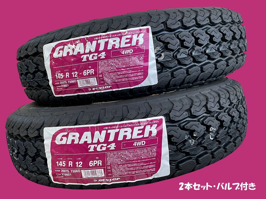 - ダンロップ グラントレック TG4 145R12 6PR 25年製造商品 2本☆バルブ付き☆即決ご落札で九州送料入れて9,350円