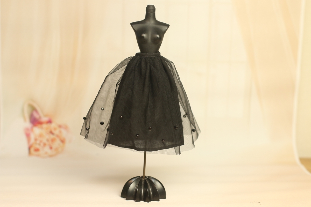 - 人形服是S112-002 黒いチュールビーズスカートmomoko、ジェニー、OBITSUボディ、MISAKI、ピュアニーモ