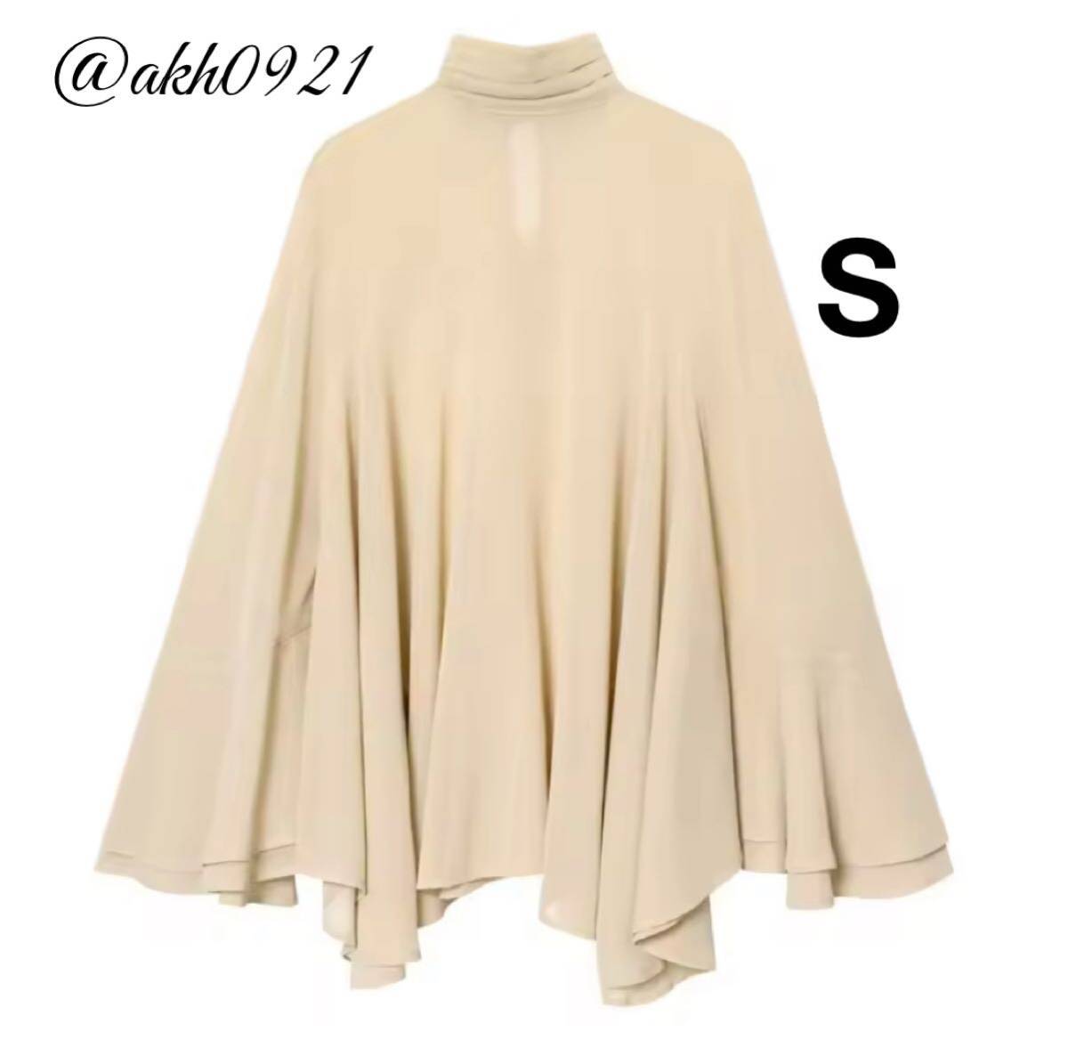 > 新品★秋新作★vintage ヴィンテージ レトロ ハイネック フリル フレアスリーブ ブラウス トップス Sサイズ レディース★ZARA 好きな方に