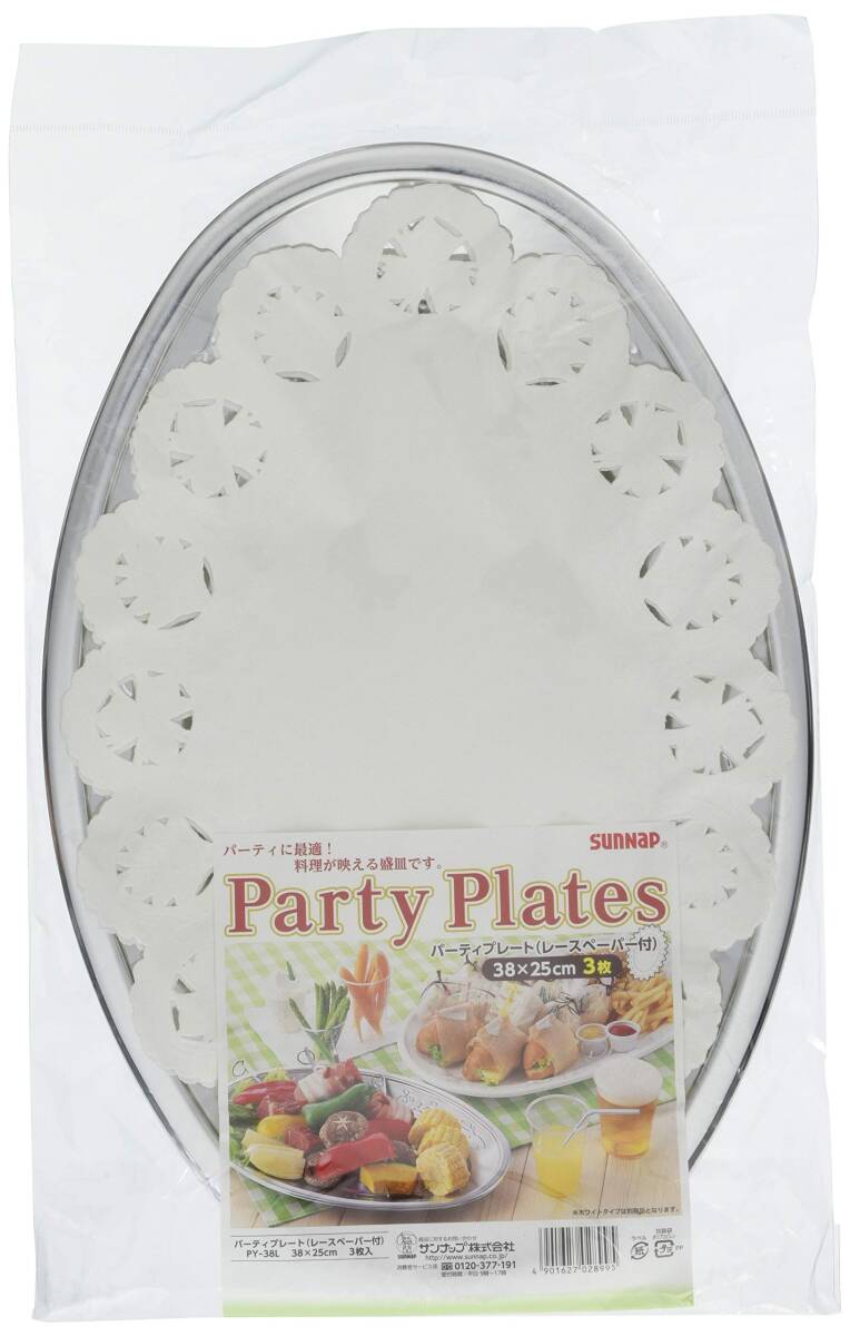- サンナップ パーティプレート 38×25cm 3枚入 シルバー 175108.0
