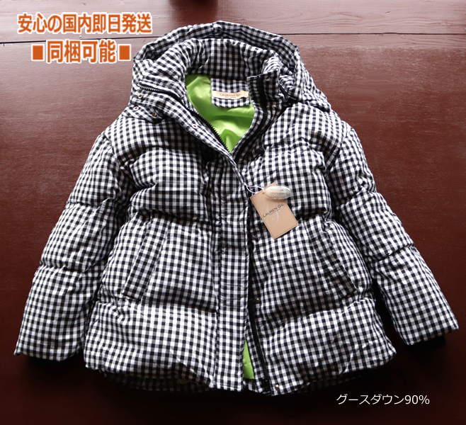 - 新品■L.GIL レディース ギンガムチェック ダウン ジャケット M~L 防寒 重厚 ショートコート フード脱着 cotton ダウンジャケット アウター