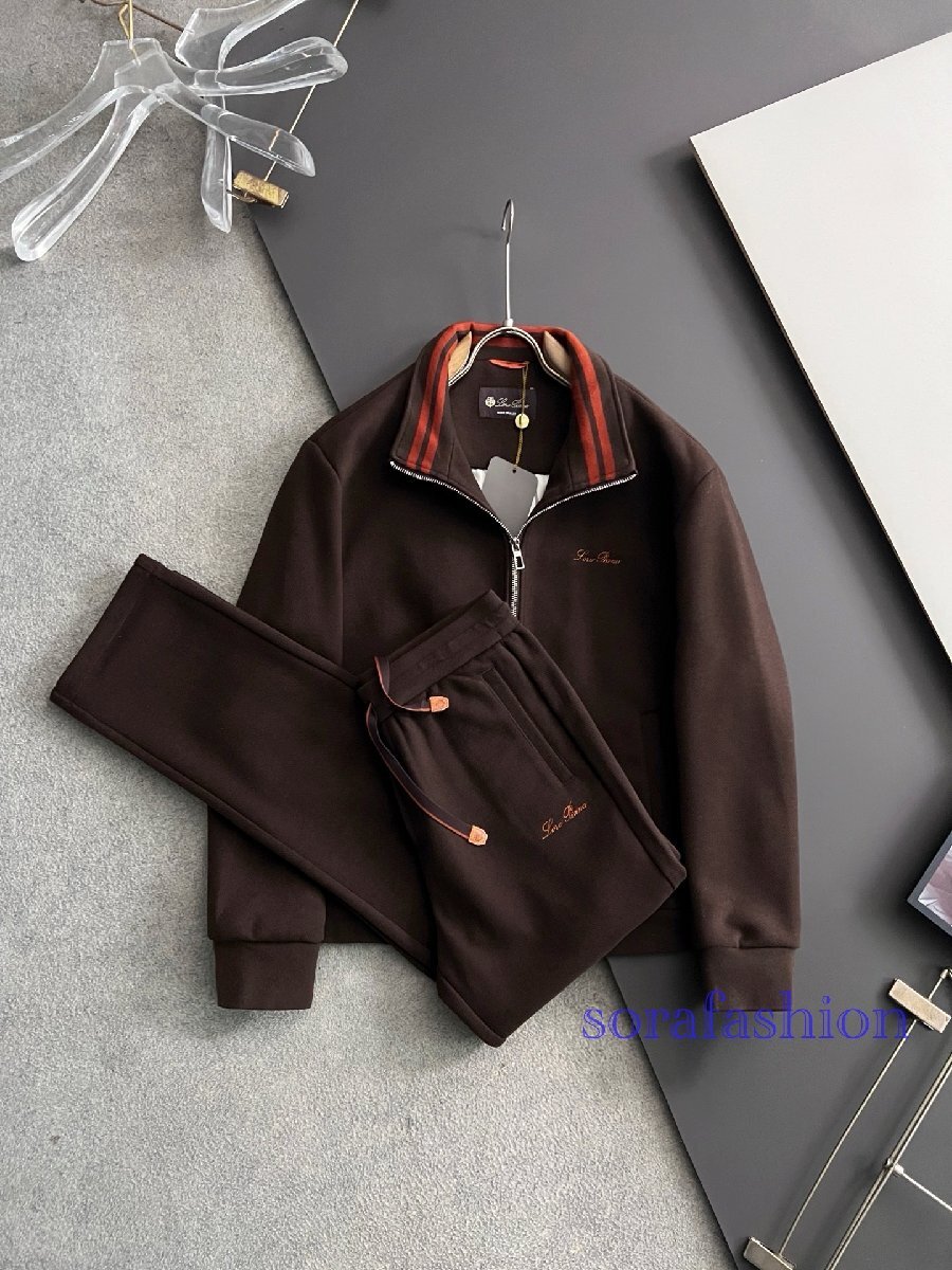 - Loro Piana ロロピアーナ メンズセットアップ スウェット上下2点セット コーヒー 54 パーカー ジャケット ブルゾン ロングパンツ ウール