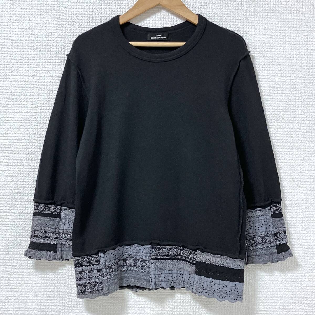 > 製品染め tricot COMME des GARCONS 裾レース ウール ニット カットソー ブラック 黒 トリココムデギャルソン セーター archive 5080465