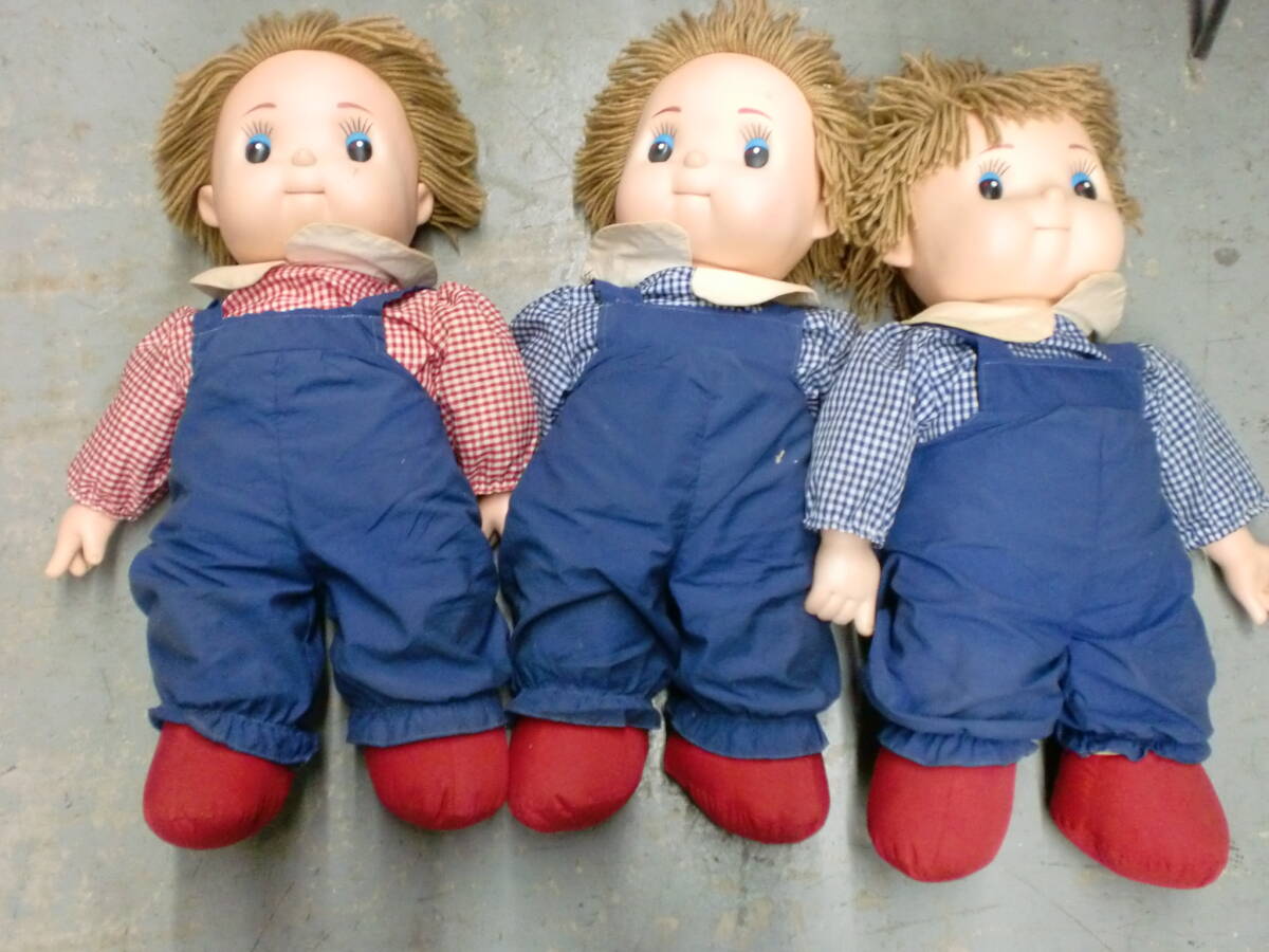 - ●昭和レトロ 人形 詳細不明 約65cm 3体セット 汚れ、傷み、書き込みあり※ジャンク■140