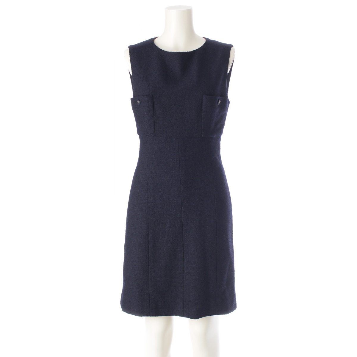 - シャネル 96P ウール ココボタン ツイード ノースリーブ ワンピース P06304 ネイビー 38【中古】