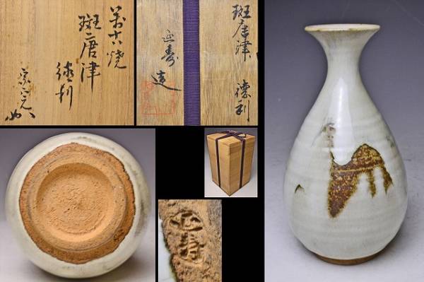 - 佐藤延寿 ★ 萬古焼 斑唐津 徳利 ★ 堀内宗完 書付 共箱 ★ 検 表千家 万古焼