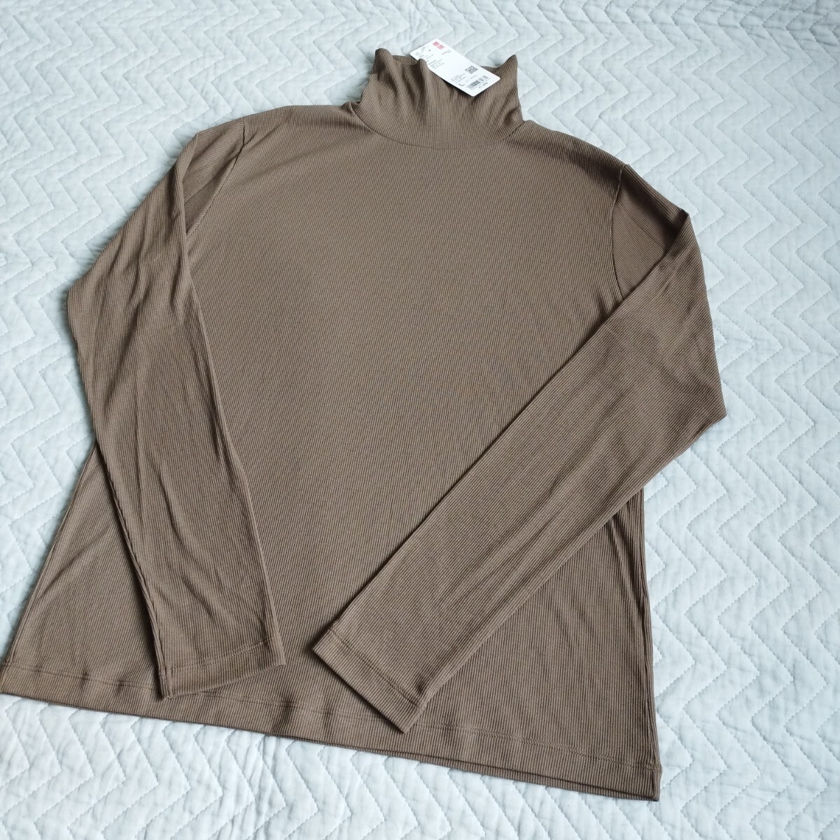 - 未使用 ユニクロ ライトリブタートルネックT 長袖 大きい L ブラウン タートルネック Tシャツ お色サイズ違い有り 匿名 送料無料