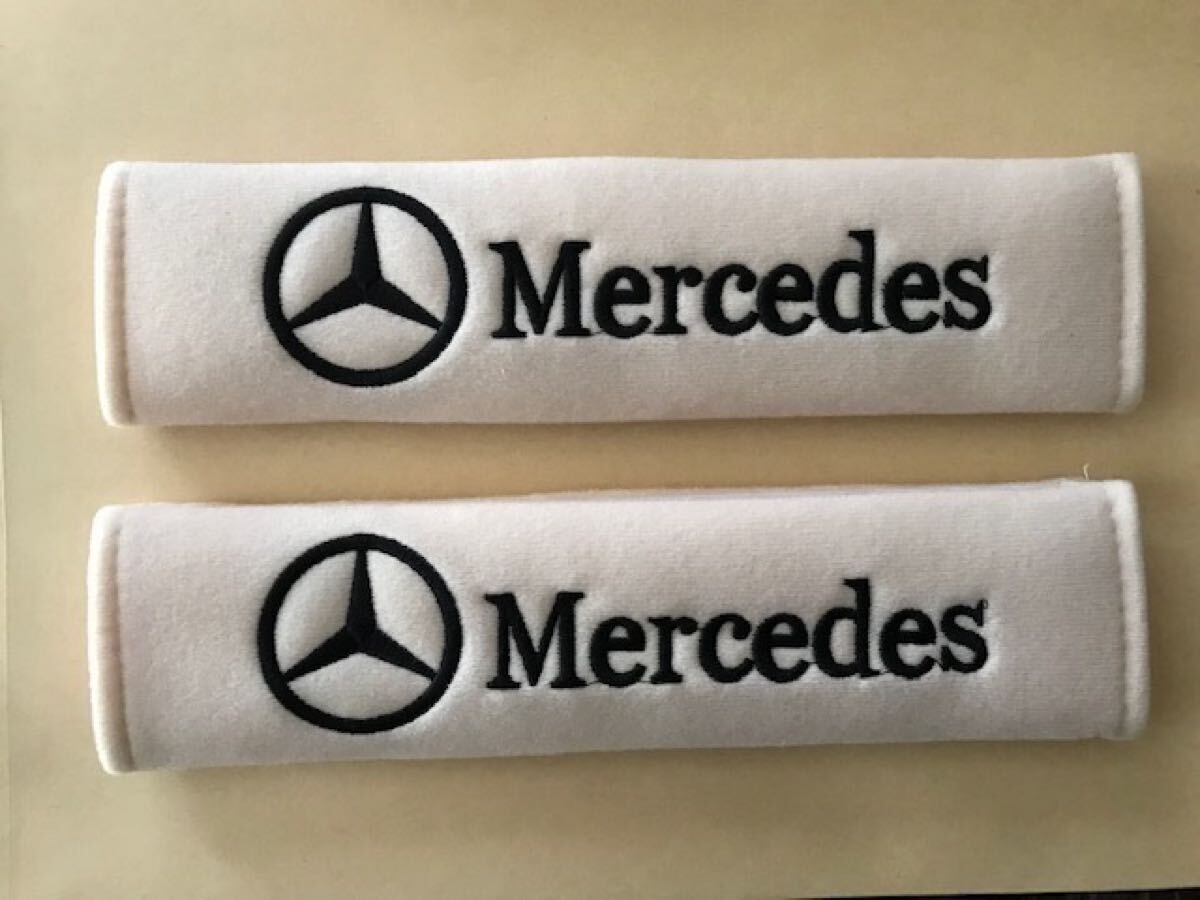- 送料無料! さりげなく目立つ? メルセデスベンツロゴ アイボリー色 シートベルトカバー CLK SEC ゲレンデ GTR SL SLK Cクラス