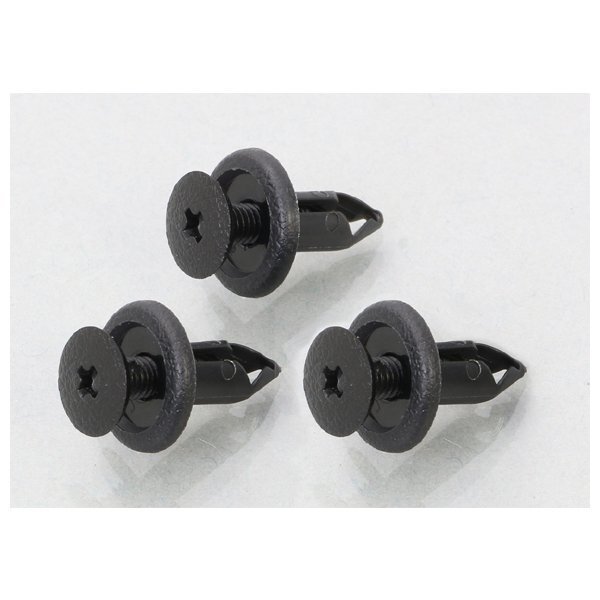 ●パネル等を取り付けられる樹脂製リベット。脚部が押し広げられ構成パネルを固定します。