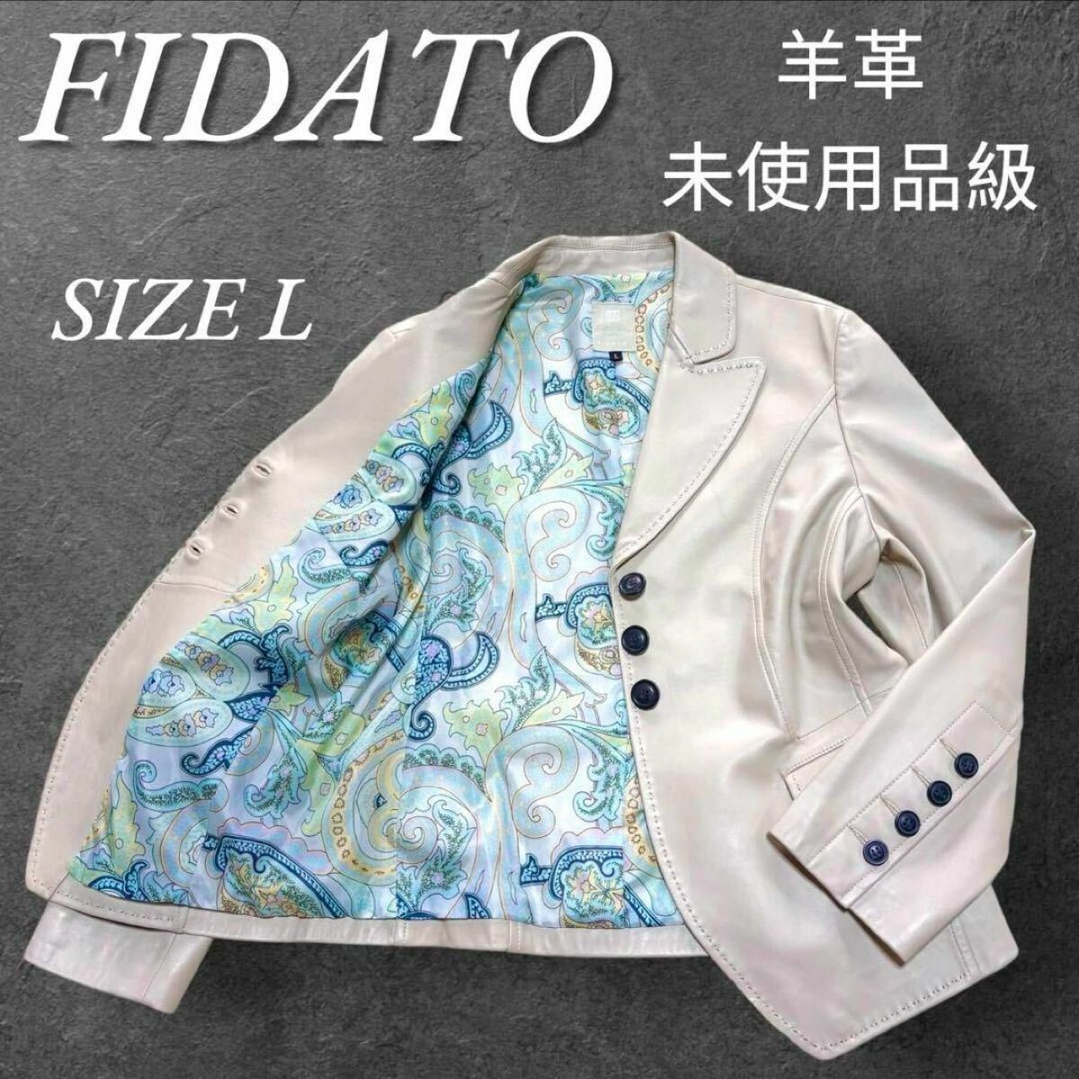 > 未使用品 美色 サイズL フィダート ラムレザー ペイズリー総柄 テーラードジャケット FIDATO 羊革 本革 ブレザー フォーマル