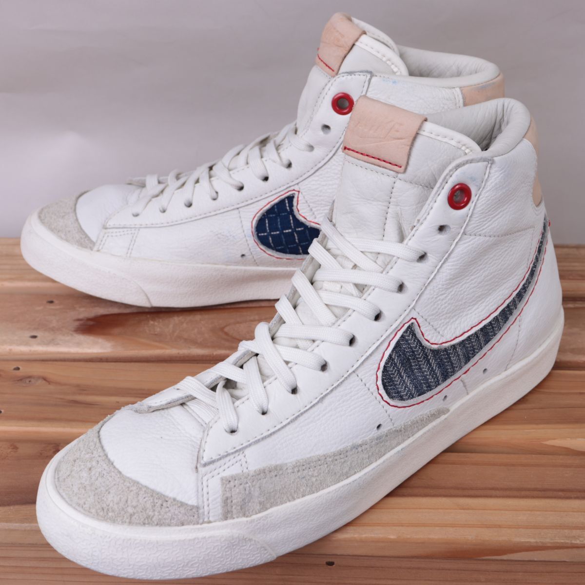 - z2965 ナイキ ブレーザー ミッド '77 US10.5 28.5cm/白 ホワイト 紺 グレー NIKE BLAZER MID '77 DENHA ブレザー メンズ スニーカー 中古