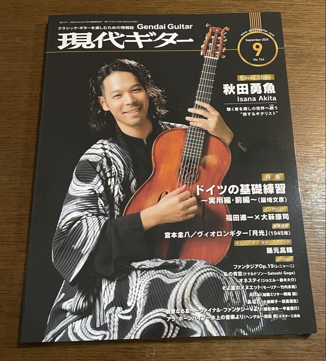 > ★美品★現代ギター25年09月号(No.744)●秋田勇魚福田進一&大萩康司・クラシックギター・楽譜・タブ譜●匿名配送・送料無料
