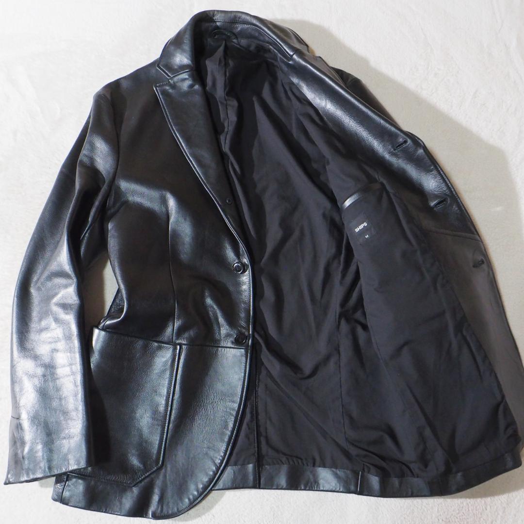 - シップス SHIPS レザーテーラードジャケット 牛革 ブラック 本革 肉厚 メンズMサイズ