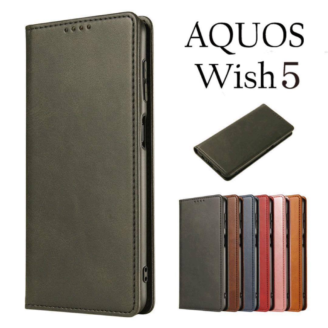 - AQUOS Wish5ケース アクオスウィッシュ5 ベルトなし マグネット:ブラック