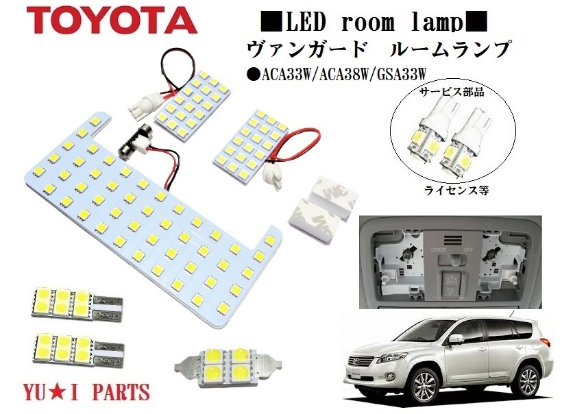 - III トヨタ ヴァンガード ルームランプ ACA33W/ACA38W/GSA33W系 高輝度3チップ SMD仕様 ライセンスランプ サービス