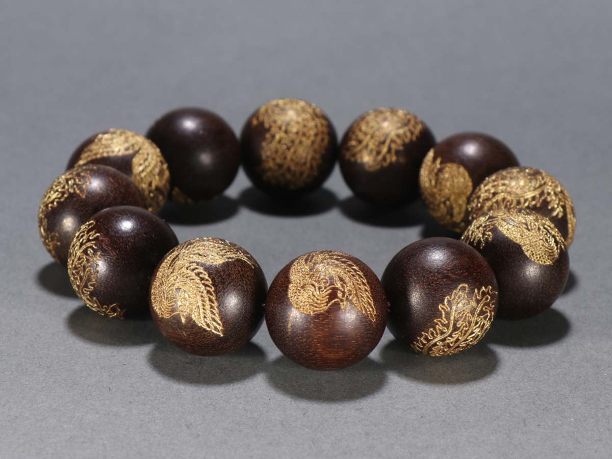 - ▽鴻▽清時代 珍木彫 漆金 鳳紋手串 非常に良い香り 時代物 中国古美術 骨董品