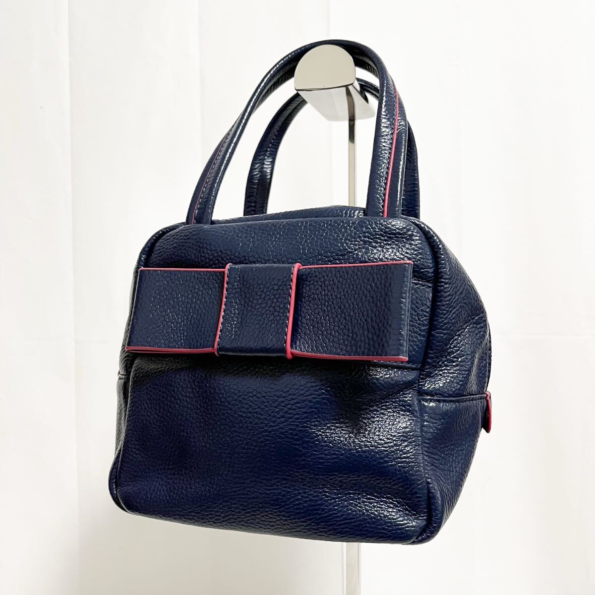 - 和709★ SHIPS Laugoa シップス ラウゴア ミニバッグ ハンドバッグ ネイビー ピンク レディース リボン