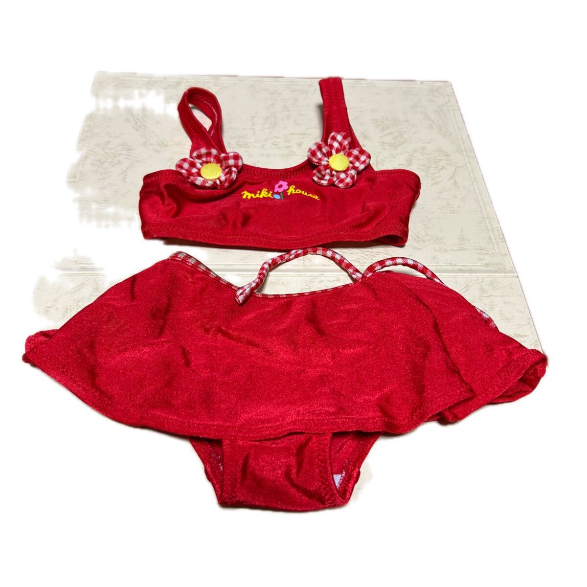 - ミキハウス 水着 女の子 赤 ビキニ セパレート 花柄 サイズ90
