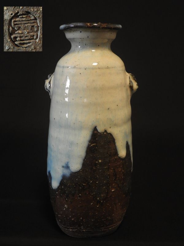 - 花器 耳付花入 印有り / 萩焼 信楽焼 京焼 【送料無料】