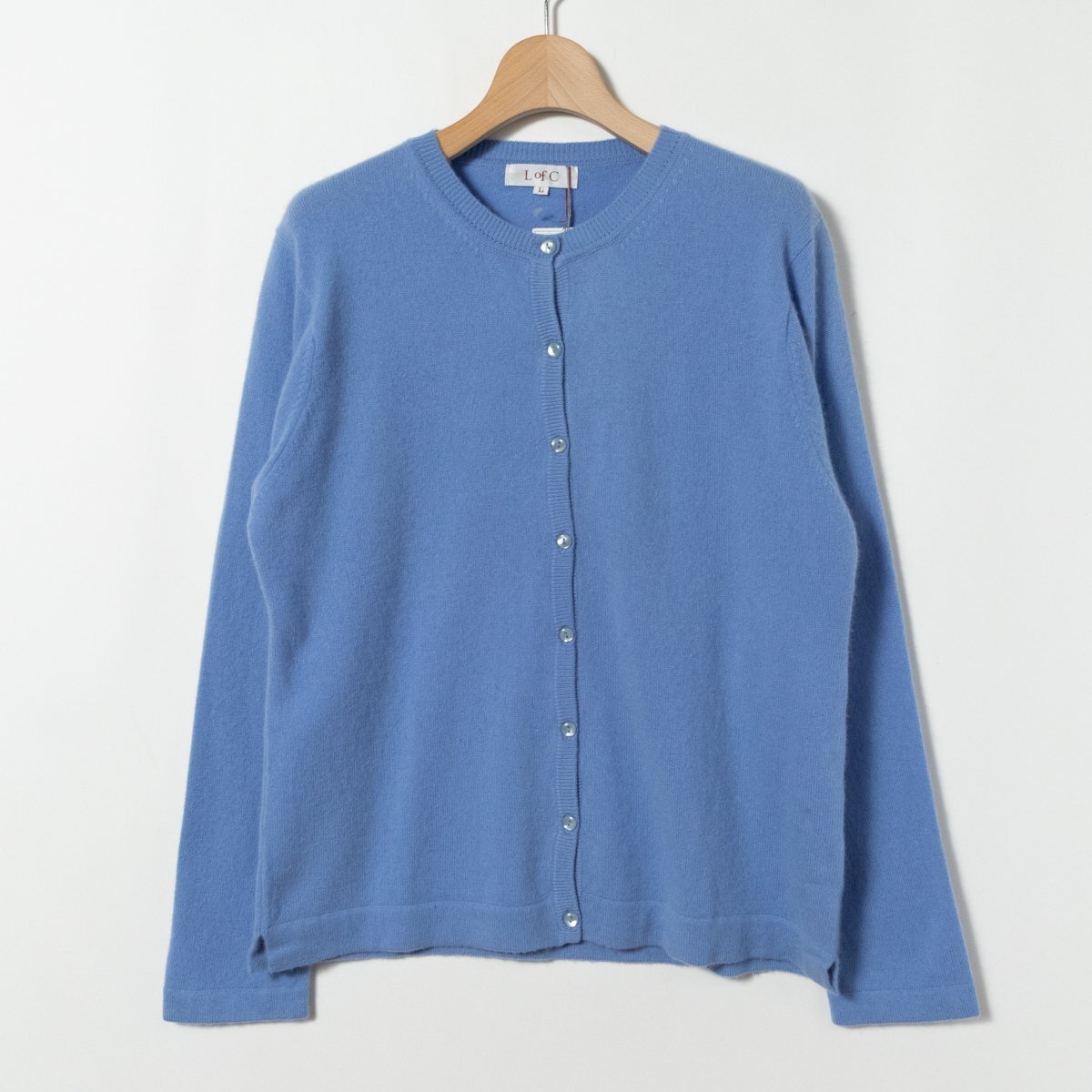 > タグ付き 未使用 L of C 日本ニット商連 カシミヤ100% クルーネック 長袖カーディガン ライトブルー 水色 Lサイズ レディース 無地 秋冬
