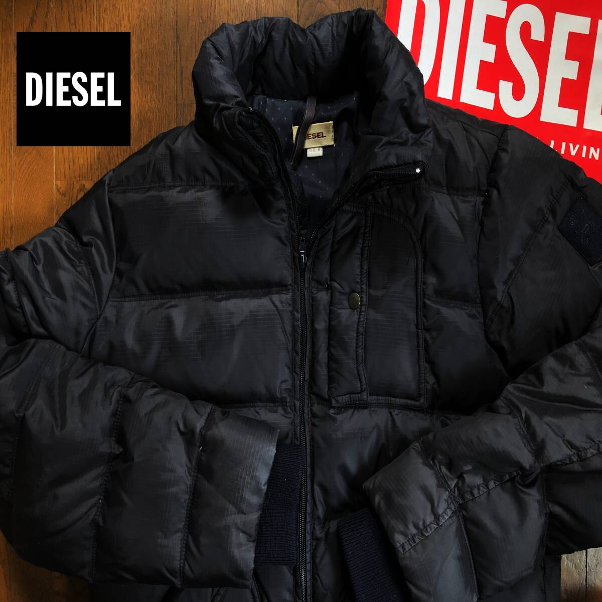 > ●サイズM〜L程 防寒バッチリ DIESEL ディーゼル 肉厚 ずっしり 中綿ダウン ジャケット メンズ 黒 訳あり 即決 即納 55dsl y2k●1566