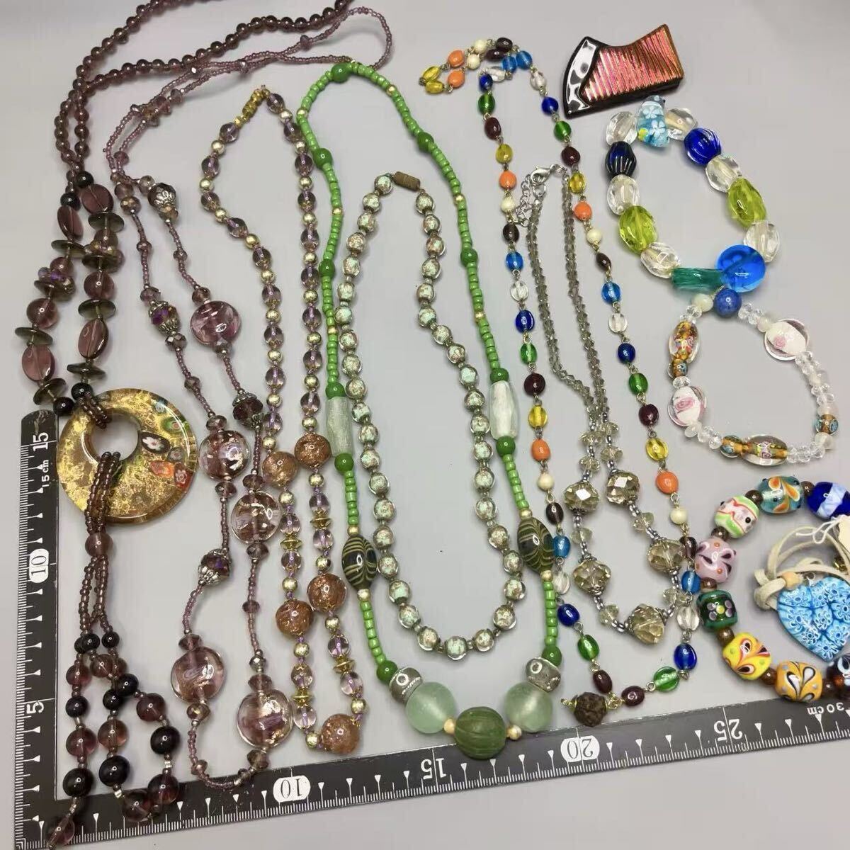 - 1円 ガラス アクセサリーまとめ ベネチアガラス ムラノガラス 蜻蛉玉/トンボ玉 カラフル ネックレス ブレスレット ブローチ パワーストーン