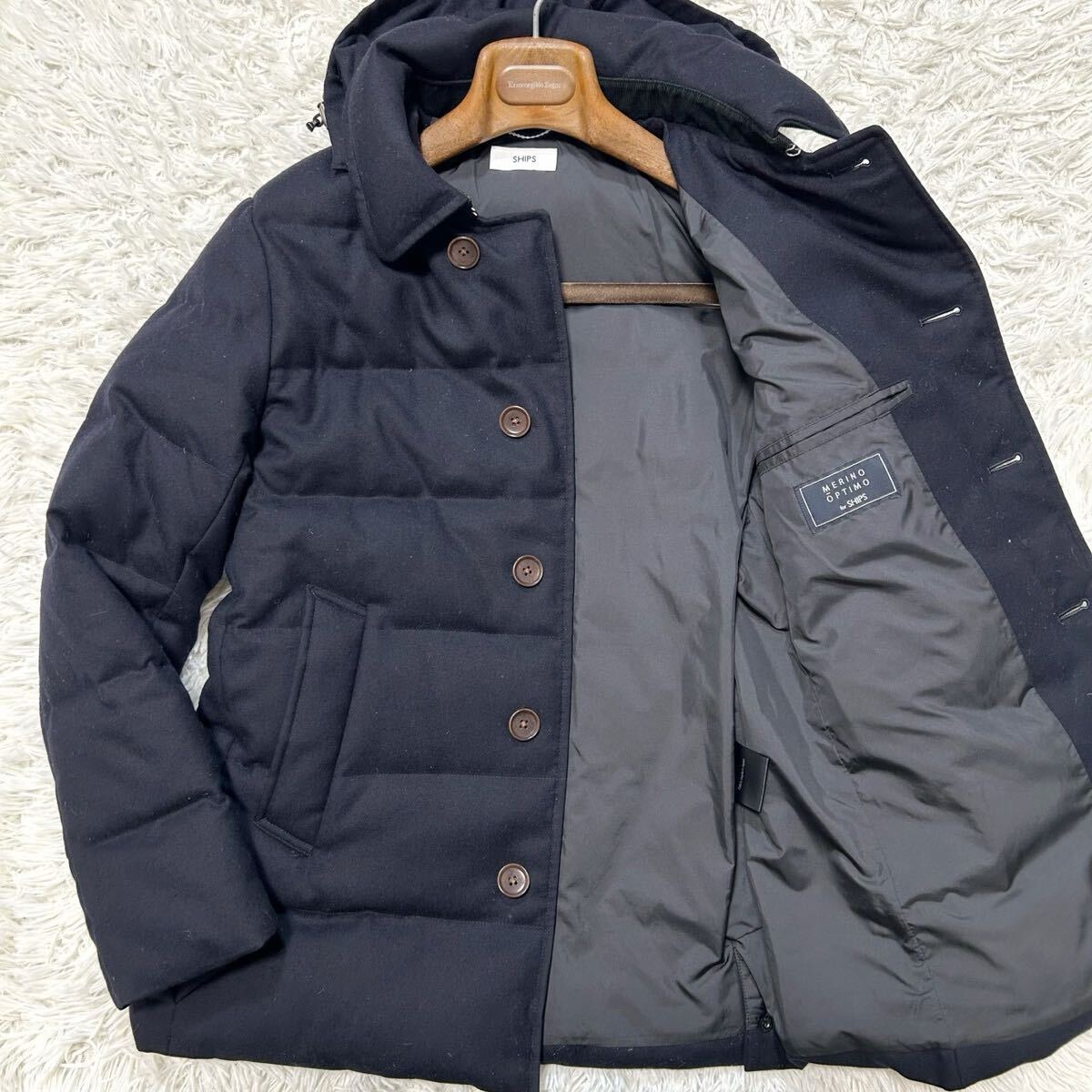 - 極上ダウン90%!!!シップス MERINO OPTIMO【溢れる高級感】SHIPS ダウンコート ダウンジャケット ネイビー 肉厚