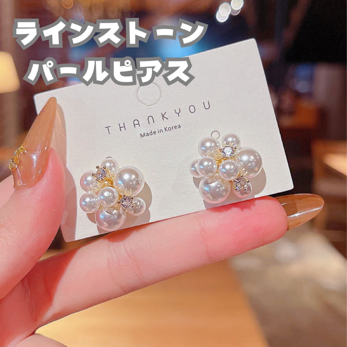- ピアス パール 大人可愛い おしゃれ パールピアス 大人可愛い おしゃれ 385 大ぶり ラインストーン 結婚式 オシャレ ホワイト