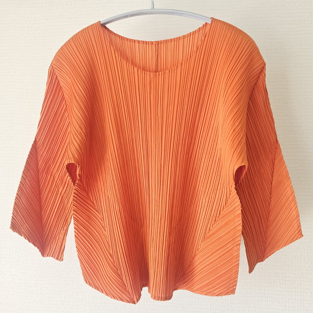 - 793☆ PLEATS PLEASE ISSEY MIYAKE プリーツプリーズ 変形 チュニック カットソー オレンジ 3