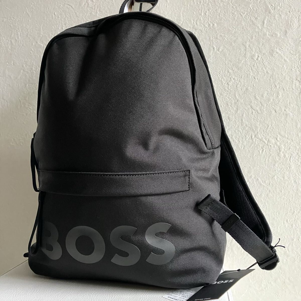 - 【現行モデル!! 未使用級!!】HUGO BOSS ヒューゴボス リュック バッグパック ビジネス ロゴ ストライプ メンズ ブラック 黒 A4収納 肩掛け