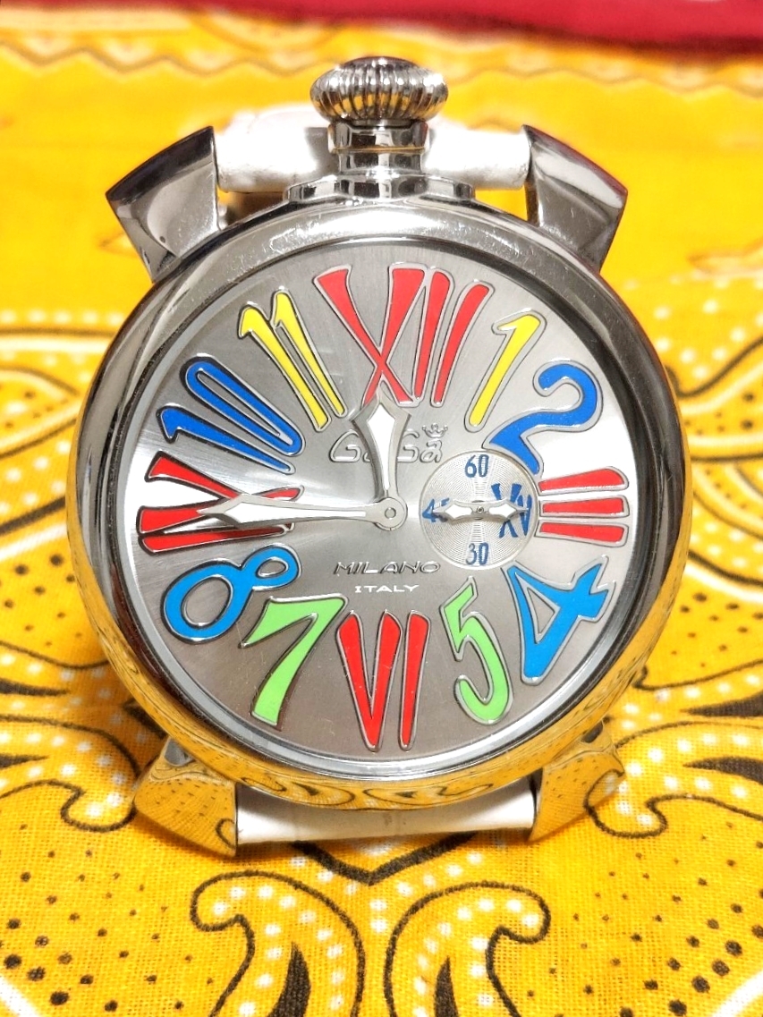 - 236.1円 【稼働品】ガガミラノ マニュアーレ46 クォーツ マルチカラー ホワイト革ベルト