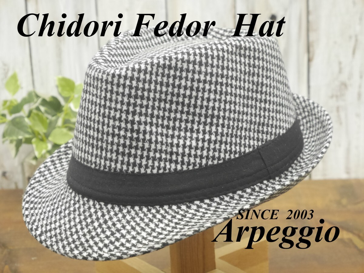 - フェドラハットシンプル 千鳥チェック ホワイト ブラック 秋冬 男女OK送料\450 ボルサリーノ パナマ 中折れ ハット