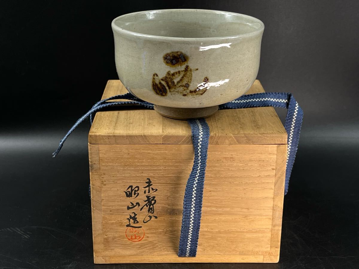- 赤膚焼 昭山作 茶碗 共箱 茶道具【博圓】径11.7cm