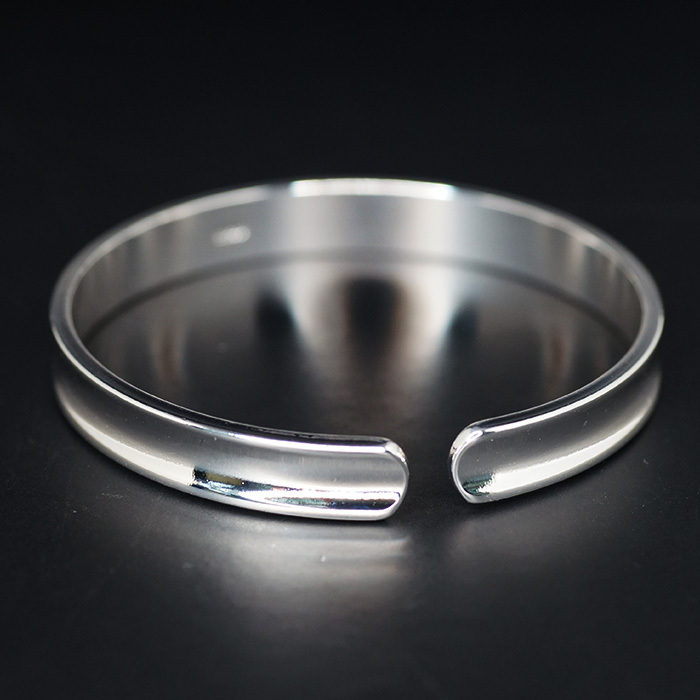 - [BANGLE] 925 Sterling Silver Plated ビューティフル ハイポリッシュ 逆甲丸内平 8mm ワイド C形 オープン シルバー バングル (18g)