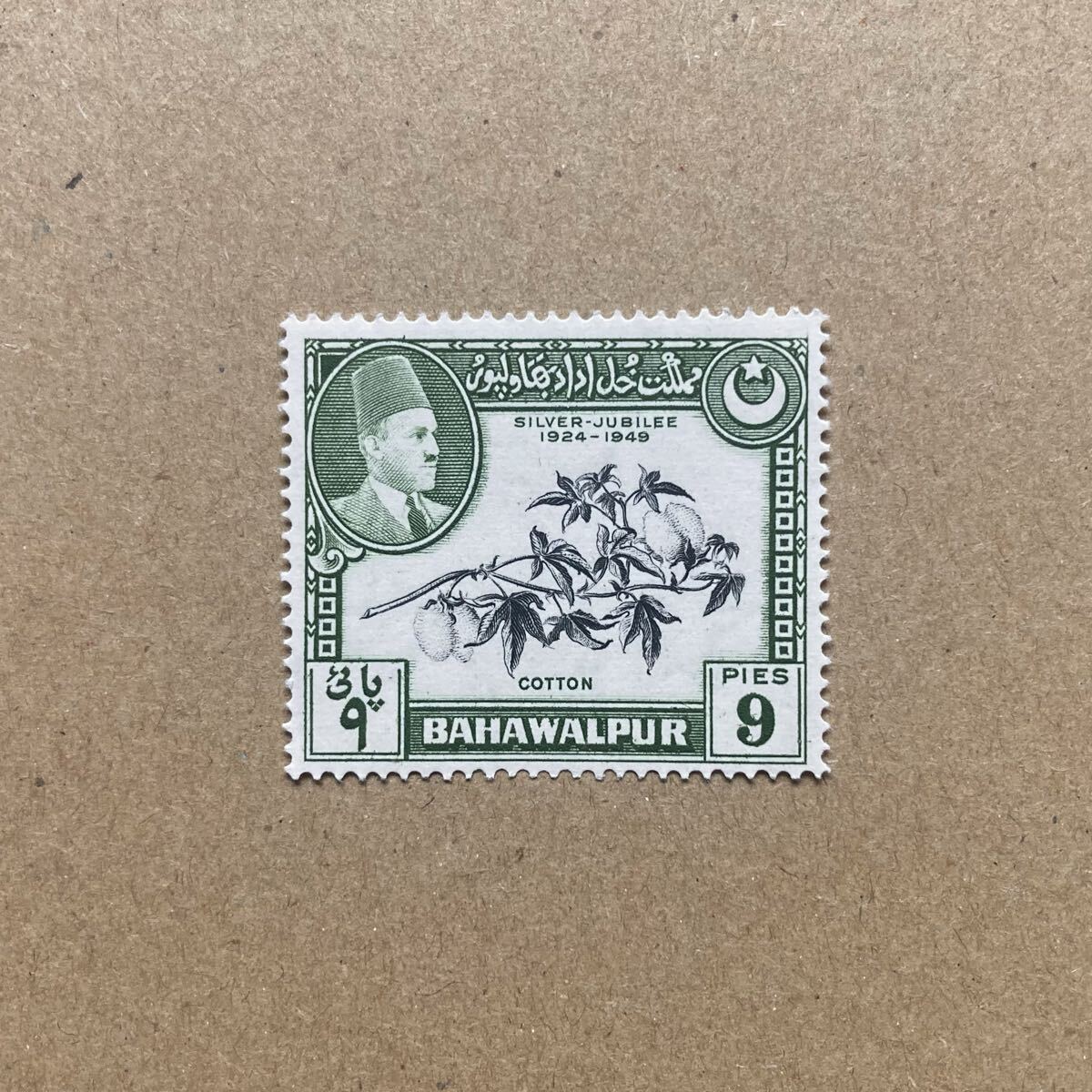 - 外国切手【古切手】1949年 イギリス領バハーワルプル(パキスタン)サディク・ムハンマド・カーン5世即位25周年記念 綿 切手 未使用品
