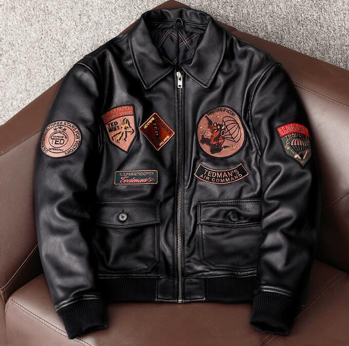 - 高品質綺麗フライトジャケット レザージャケット 羊革 ライダースジャケット 革ジャン カウハイド メンズファッション 刺繍 バイクレザー