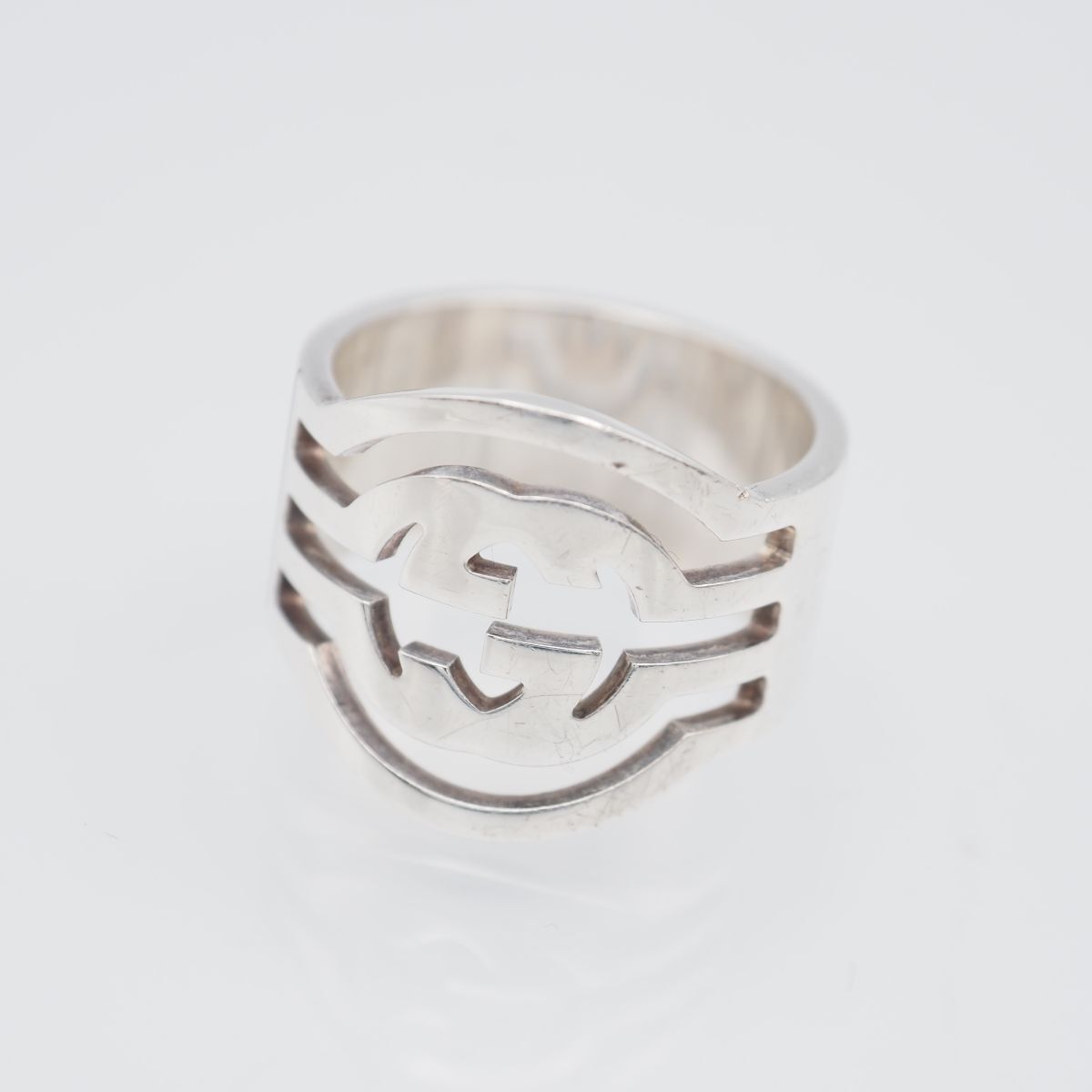 - Y904 1円 グッチ GUCCI 925 made in italy刻印 インターロッキングG ロゴ デザイン シルバー リング 指輪 15号