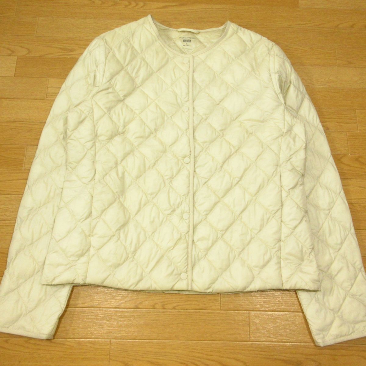 - ◎使用少々!UNIQLO ユニクロ ウォームパデッド ジャケット Vネック 防寒 2WAY 防寒 軽くてあたたかい! レディース アイボリー M◆AA4941