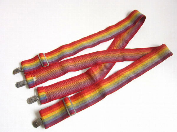 - ビンテージ/LEEGIN/伸縮素材/レインボーカラー/クリップ式X型サスペンダー/メンズ/Xバック/極太/ブレイシーズ/D133-52-0015